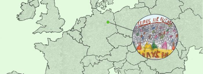 Carte de l'Europe avec Berlin où ont lieu des marches pour le climat