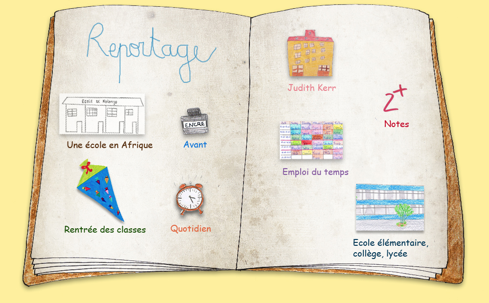 Les différentes écoles en Allemagne Judith Kerr a dû fuir l'Allemagne et est allée à l'école en France Le quotidien des élèves en Allemagne La rentrée en CP, ça se fête en Allemagne Les bonnes et les mauvaises notes L'école autrefois, des grands-parents nous expliquent Des élèves d' Afrique nous parlent de l' école du village Voilà à quoi ressemble un emploi du temps allemand