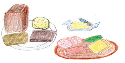 C'est souvent un repas froid composé de diverses sortes de pain et de charcuterie, fromage, poisson, oeufs... Chacun se sert selon ses goûts.