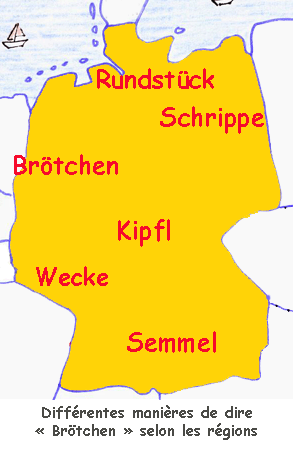 Il existe de nombreuses sortes de petits pains, les plus communs et les moins chers sont les petits pains blancs qui ressemblent au pain français. Ces petits pains blancs ont des noms différents selon les région : à Berlin, on dit "die Schrippe".