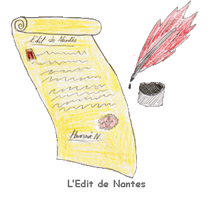 Puis, Henri IV, le roi de France de l'époque (qui avait été lui-même protestant) a décidé que tout le monde avait le droit de pratiquer la religion qu'il voulait. Il a fait une loi en 1598, qui s'appelle l'Edit de Nantes, qui autorisait les protestants à pratiquer leur religion sans se cacher et qui interdisait aux catholiques de persécuter les protestants. C'était enfin la paix à l'intérieur de la France.