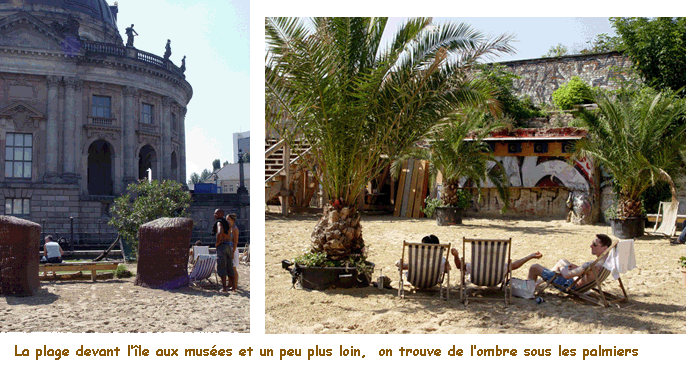 Même si à Berlin et dans ses alentours, on trouve beaucoup de plages naturelles au bord des nombreux lacs, il y a maintenant aussi un " Berlin Strand " (Berlin Plage). Dès la fin du mois d’avril et jusqu’en septembre, on peut en plein centre ville, se mettre en maillot de bain sous les palmiers, se faire bronzer, jouer au beach-volley. On peut même s'asseoir ou s'allonger dans un Strankorb. C'est comme une toute petite cabane en osier ou en bois et peint de différentes couleurs, il y a de la place pour deux. Les sièges sont recouverts de coussins souvent rayés. En bas, il y a deux petits tiroirs où l'on peut laisser ses affaires ou - quand ils sont tirés - poser ses pieds. On peut en louer partout en Allemagne au bord de la mer.