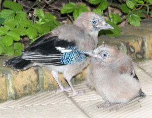 Von den vier Eiern im Nest haben nur zwei Babyvögel überlebt. Sie waren anfangs sehr scheu. Ein Eichelhäherbaby machte seine ersten Flugversuche und landete dabei auf dem Fahrrad vor dem Küchenfenster.
