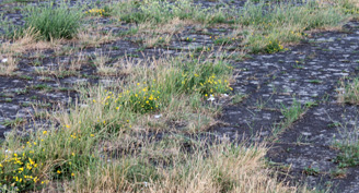 L'herbe qui pousse sur les anciennes pistes d'atterrissage