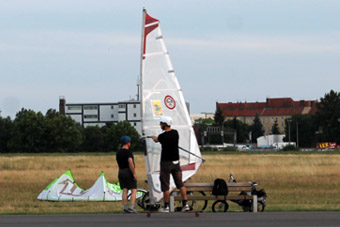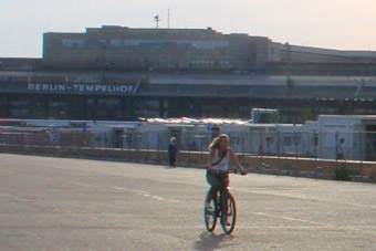 Là où les avions autrefois atterrissaient, se trouve maintenant un parc, le Tempelhofer Feld. C'est un immense espace vert au coeur de la ville. Quand on est là, on éprouve un  Faire de la planche à voile terrestre au Tempelhofer Feldsentiment de liberté. On peut y faire toutes sortes de sports : du vélo, du skateboard, du jogging, de la planche à voile terrestre, du handball, du foot, du volley, en hiver on peut même faire du ski de fond. Et ce n'est pas tout :  On peut également faire voler un cerf-volant, jouer au minigolf, faire un barbecue, se faire bronzer, faire de la musique ou en écouter, participer aux jardins communautaires. On peut y faire réparer son vélo ou apprendre soi-même à le réparer. Et ainsi de suite. Et celui qui en a envie peut aussi ne rien faire.