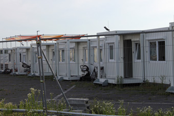 Berlin-Tempelhof et le village de réfugiésEn 2017, le plus grand village berlinois de conteneurs pour les réfugiés a pris place au bord de l'ancien terrain d'atterissage, renommé le Tempelhofer Feld (= le champ de Tempelhof). Les conteneurs proposent de petites pièces avec cuisine et salle-de-bain.