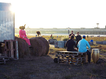 Le village de conteneurs pour les réfugiés au Tempelhofer FeldSur le Tempelhofer Feld : le terrain de jeux du village de réfugiés L'aéroport de Tempelhof, qui était un endroit crucial pour la population de Berlin pendant le blocus, est maintenant un endroit crucial pour beaucoup de réfugiés. De nombreux bénévoles peuvent et ont pu rendre d’une certaine manière ce qu'ils – ou leurs parents ou leurs grands-parents – avaient reçu après la guerre : de l’aide quand on est dans le besoin !