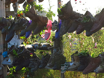 Chaussures devenues pots de fleursTempelhof symbolise de nouveau un espace de liberté