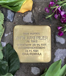 Der Stolperstein  ist glücklich verlegt. Fast alle sagen, sie sehen ihn jedes Mal, wenn sie hereingehen. Er kommt uns genau entgegen.  Man läuft um ihn herum, man will nicht darauf treten. Das Haus hat etwas zurückgewonnen, Anita Hani Pilzer gehört wieder dazu.