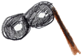 Un demi-masque de satin noir que l'on met sur le visage dans les bals masqués