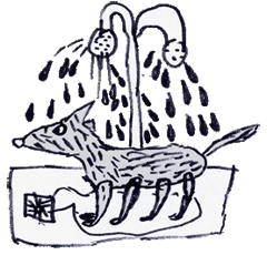 Un loup qui a enlevé sa vesteOn a aucune idée. « Vesse », ça ressemble à veste, donc c'est peut-être un loup qui cherche sa veste, pardon, sa fourrure. D'ailleurs on reconnaît sur le dessin la fermeture éclair de la fourrure au sol. lLoup qu'on laverait comme de la vaisselle.
