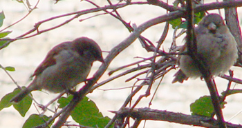Wir bekommen Besuch von Spatzen. Catherine stellt ihnen frisches Wasser hin.