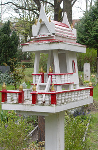 Ici repose une jeune danseuse de ballet, là peut-être un bouddhiste. Sur sa tombe, une maison des esprits. Et là, quelqu'un qui semble, au-delà de la mort, être encore