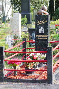 Le champion du monde de boxe Graciano Rocchigiani repose dans une sorte de ring. Sur sa pierre tombale, il y a des gants de boxe