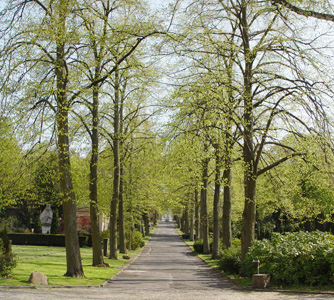 Nous avons des sentiments mitigés en entrant dans le cimetière. Nous venons de passer devant une aire de jeux avec une énorme araignée à grimper bien tentante. Nous ne savons pas exactement ce qui nous attend. Juste à l'entrée se trouve le Café Finovo. Celui-ci propose du café et des gâteaux, mais aussi des fleurs, des bougies et d'autres articles. C'est de plus un lieu de rencontre. Devant nous, il y a un grand parc. Les oiseaux gazouillent. L'atmosphère est détendue.