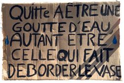 Youth for climate Montpellier a été mis en place en mars 2019. Nous nous occupons de l’organisation des marches pour le climat à Montpellier. De nombreuses personnes de Montpellier et des environs nous aident à partager l’information en distribuant des tracts, en collant des affiches et en partageant nos annonces sur les réseaux sociaux. Nous nous occupons aussi de tout le domaine logistiquePanneau Je suis ta mer, respecte-moi : déclaration de la marche, parcours, service d’ordre, organisation de mégaphones, banderoles et autre. Pourquoi est-ce important de marcher pour le climat ? Beaucoup pensent qu’une marche ne va pas empêcher le changement climatique qui fera, et fait déjà, de nombreux morts. Pourtant cette mobilisation des jeunes à travers le monde nous a permis d’attirer l’attention des politiques. Le 15 mars nous étions 1,5 millions. Le 21 mai nous étions 1,9 millions. Il n’est plus possible d’ignorer la jeunesse qui crie sa peur et sa colère dans les rues. Les politiques continuent à nous ignorer mais nous ne cessons pas de marcher.Panneau pour la manif pour la planète