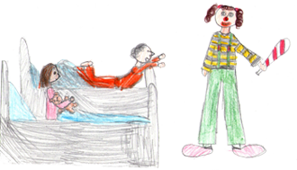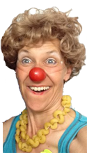 Die Clowns in Krankenhäusern sind meistens nicht sehr geschminkt. Nur ein bisschen weiß über den Augen, ein bisschen Lippenstift, die rote Nase natürlich, ein ziemlich schlichtes Kostüm