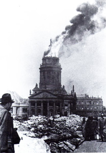 Le lycée a été détruit en grande partie début mai 1945. Les élèves et professeurs qui avaient survécu à la guerre à Berlin, se rassemblèrent dès le mois de mai 1945 autour du professeur Ernst Lindenborn qui recommenca ses cours. Ceux-ci avaient lieu dans une des pièces de la cathédrale francaise de Berlin en partie détruite. Une armoire en bois foncé servait de tableau.