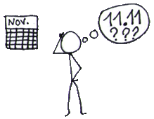 Jemand sagte uns, es sei der Beginn der Karnevalzeit. Das stimmt. Der Karneval fängt am 11.11. um 11 Uhr 11 an.