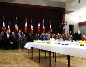 Greta: Der 11. November ist schulfrei in Frankreich. Man spricht nicht so viel über diesen Tag, aber die Zeitungen berichten. Wir Kinder wussten nicht, dass es um einen Waffenstillstand ging. Man wusste nur, dass es ein Feiertag ist. Manche Kinder sangen sogar die französische Nationalhymne - die Marseillaise - vor dem Ehrenmal. Erst in der 5. Klasse haben wir etwas über den Ersten Weltkrieg gelernt und verstanden, was der 11. November bedeutet. Kinder singen die Marseillaise bei einer Gedenkfeier