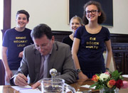 Thomas Jander prépare une exposition sur la première Guerre Mondiale. Les jeunes reporters du Grand méchant loup lui ont posé différentes questions : comment les gens vivant en campagne apprenaient que la guerre était déclarée, que signifiait la communication alors qu'il n'y avait ni portable ni Internet, et qu'est-ce que cela avait à voir avec la guerre. Emmanuelle, Gaïa, Leo et Julienne ont même pu voir de vraies lettres du front !