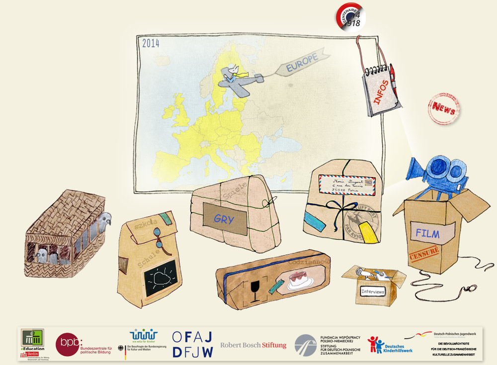 Dzień dobry, nazywam się Artur i jestem gołębiem pocztowym. Witam Cię serdecznie na naszej wspólnej wyprawie odkrywczej po trzech krajach. Podążaj za mną w naszej podróży w czasie pomiędzy początkiem I wojny światowej w 1914 roku a dzisiaj. By otworzyć paczki, kliknij na nie.