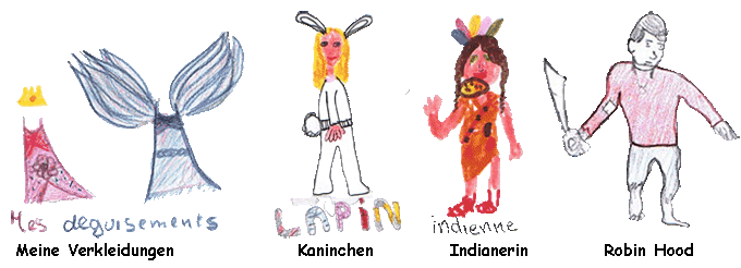 Des enfants de Maisoncelles la Jourdan ont faits des déguisements bien particuliers pour le mardi gras. Regarde bien, leurs costumes portent des noms qui existent aussi bien en français qu'en allemand. Alors même si c'est en allemand, tu pourras les comprendre ! >>>