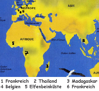 In vielen Ländern. Im Kindergarten war ich auf Madagaskar, das ist eine große Insel östlich von Afrika. Danach im Alter zwischen 6 und 10 bin ich in Belgien zur Schule gegangen. Dort sprach ich flämisch, aber ich habe alles vergessen. Mit 10 zog ich in die Elfenbeinküste und blieb dort vier Jahre lang. Es liegt in Afrika. Dort gibt es viele Elefanten, deshalb heißt das Land so, weil Elefantenzähne aus Elfenbein sind. Danach habe ich drei Jahre lang in Frankreich gelebt, da war ich 14. Dann war ich im Kongo, in Brazzaville. Dort habe ich Abi gemacht. Dann kehrte ich zurück nach Frankreich, wieder für drei Jahre. Dort habe ich an der Uni studiert, und dann bin ich nach Berlin gezogen.