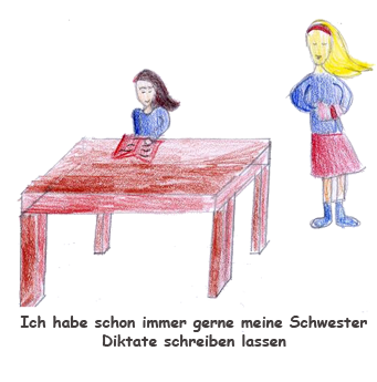In eurem Alter? Da habe ich noch nicht so spezielle Wünsche gehabt. Aber ich habe schon immer gerne meine Schwester Diktate schreiben lassen. Ich musste immer mit ihr ein bisschen üben.