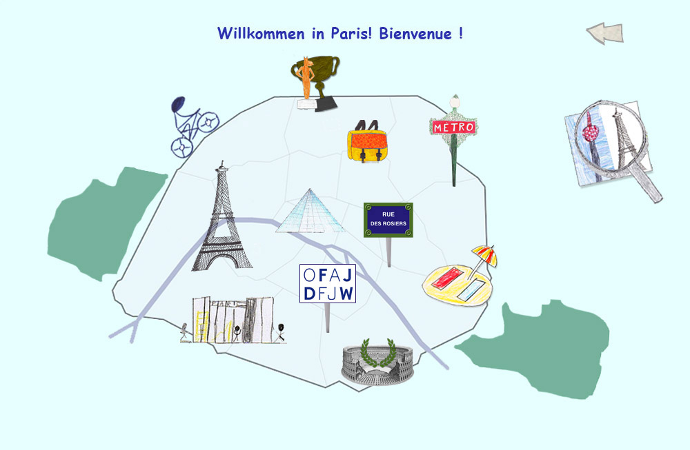 Ein Spaziergang durch ein jüdisches Viertel in Paris Sehenswürdigkeiten in Paris Unterwegs mit dem Rad Als Paris noch Lutetia hieß - Paris vor 2000 Jahren Vorstadt mit dem berühmten Flohmarkt Willst du Französisch lernen? Beim DFJW bist du richtig! Unsere Freunde aus Paris berichten über ihre Schule Baden und Sonnenbad mitten in Paris: Paris-Plage Eine Schülerin aus Paris erzählt über beide Städte Paris und Berlin im Vergleich Besonderheiten der Pariser Metro und Infos Zurück Wie der Name des Museums Louvre entstanden ist
