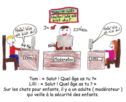 Si tu cherches un forum, demandes à tes parents s'ils peuvent t'aider. Ne visite que les "chats" modérés pour enfants et adolescents. C'est-à-dire que des adultes qui s'occupent du site, des modérateurs, lisent les messages et commentaires, et décident de les publier ou non, en fonction de leur sureté. Pour "chatter" en sécurité, il y a par exemple le forum pour enfants Seitenstark.