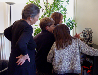 Foto der Kinderreporter im Interview mit der französischen Politikerin Simone Veil