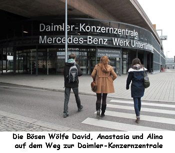 Die Bösen Wölfe waren in Stuttgart und haben ganz viel über Daimler erfahren. Daimler baut die Autos mit dem berühmten Stern, aber nicht nur, es ist eins der größten deutschen Konzerne. Dort konnten sie mit Christine Hohmann-Dennhardt sprechen, die zu Deutschlands mächtigen Frauen gehört.