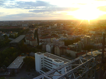 In Berlin-Schöneberg: hinten steht ein Gasometer Coucher de soleil pris du haut du gazomètre