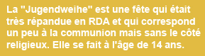 Ma mère est partie le 3 mars 1977, deux, trois jours avant ma "Jugendweihe". C'était terrible. C'était une fête pour tous les élèves de ma classe. Une salle immense avait été louée pour l'occasion. Chaque famille avait une table pour elle et à ma table, tout le monde se taisait et regardait dans son assiette, et ma mère n'était pas là. C'était plutôt bizarre. Elle-même n'avait pas su quel jour elle partirait. C'était elle qui avait organisé la fête. C'était donc une surprise pour tout le monde.