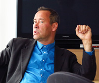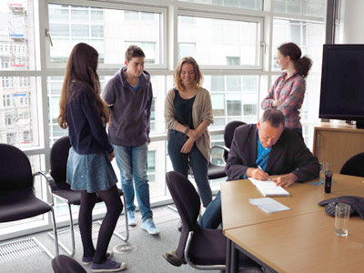 Thomas Krüger, Président de la Fondation allemande d'aide aux enfants et de l'Agence fédérale pour l'éducation civique, parle aux jeunes reporters du Grand méchant loup de sa jeunesse en RDA.
