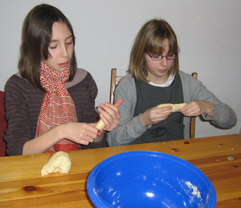 Il faut former 3 boules, puis 3 boudins avec la pâte...