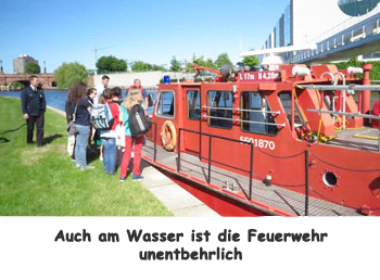 Anschließend sind wir mit dem einzigen Berliner Löschboot gefahren. Wir hatten so ein Glück, dass das Wetter gut war! Dadurch konnten wir auch oben auf dem Deck stehen!