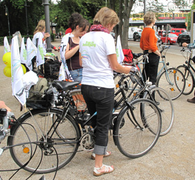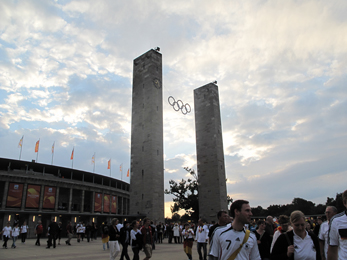 On est allés à vélo avec l'organisation Terre des Femmes jusqu'au Stade olympique de Berlin. Et voilà le billet magique, le ticket d'entrée pour la cérémonie d'inaugurataion et le premier match : Allemagne - Canada.