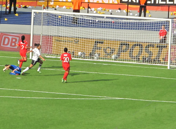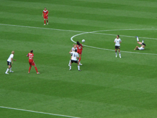 Nun ist das erste Tor gefallen! Bis zur Halbzeit steht es zwei zu null für Deutschland.