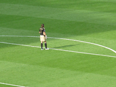 La gardienne allemande Nadine Angerer observe de loin pendant que les autres joueuses sont en pleine action