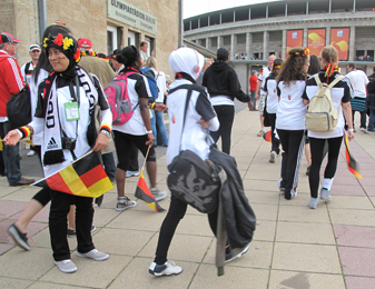 Ambiance détendue à la sortie du stade. Les supporters allemands rentrent rassurés chez eux. Mais rien n'est pas encore perdu pour les Canadiennes à qui on souhaite bonne chance.