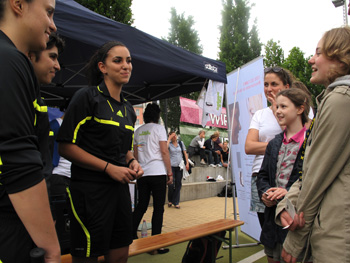 Hinter jeder Mannschaft steht ein soziales Projekt, das die Frauen vor einem breiten Publikum vorstellen können. Wir bieten auch ein „pinkes Podium“, da wird über verschiedene Themen diskutiert.
