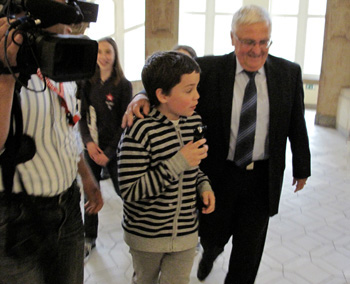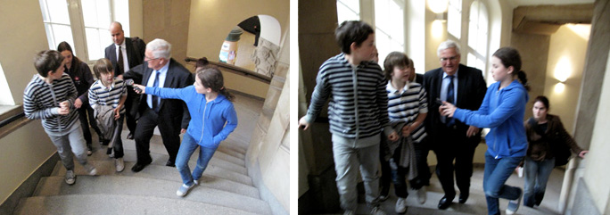 Eigentlich hatte Theo Zwanziger es ganz eilig und keine Zeit für ein Interview, aber die Kinderreporter der Bösen Wölfe konnten ihn dazu erweichen und konnten beim Treppensteigen ein sportliches Interview führen!