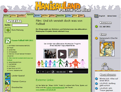 Une recommandation d'une grande institution "Bundeszentrale für politische Bildung" pour le documentaire des jeunes reporters du Grand méchant loup sur la coupe du monde de foot féminin 2011