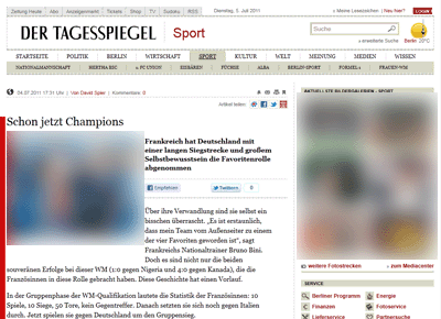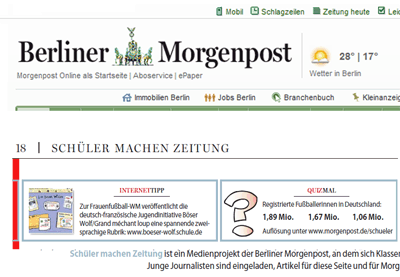 Artikel über die Homepage der Kinderreporter des Bösen Wolfes zur Frauenfußball-WM 2011