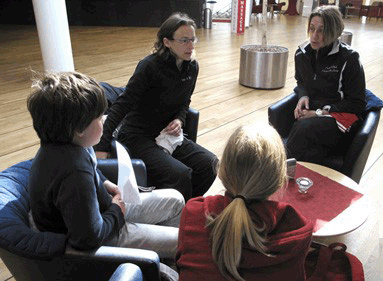 ...Gaëtane Thiney, Stürmerin der französischen Nationalmannschaft und die Fußballerin Nelly Guilbert. Beide sind neben dem Training berufstätig: Gaëtane arbeitet beim Französischen Fußballbund und Nelly als Kinderbetreuerin.