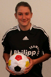 … Ariane Hingst, deutsche Nationalspielerin, die schon als Kind in der 3. Klasse den Wunsch hatte, Fußballprofi zu werden. Nun hat sie ihr Ziel erreicht.