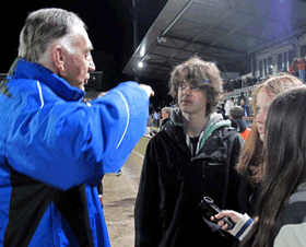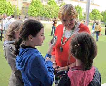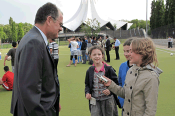 ...mit dem Präsidenten des Berliner Fußballverbandes: Bernd Schultz, der findet, dass Fußball den Mädchen näher gebracht werden sollte.