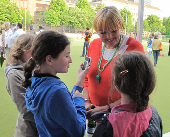 Wir haben nicht so viele Schiedsrichterinnen, aber vielleicht seid ihr ja die nächsten. Wir haben hier in Berlin ungefähr 1500 Schiedsrichter und wir Frauen sind die Minderheit, indem wir nur 50 sind aber bald 53, oder ? Wie alt seid ihr denn?